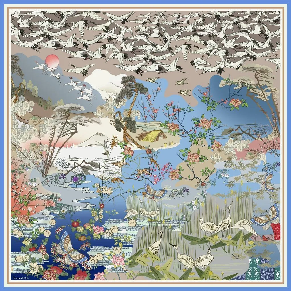 Hai mai sentito parlare della scuola pittorica giapponese Yamato-e dell'XI-XII secolo? Gli artisti Radical Chic hanno utilizzato le principali tecniche e i simboli di questa scuola nel design della sciarpa, che prende il nome dalla scuola d'arte "Yamato-e".